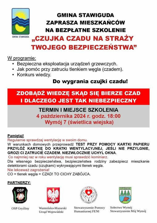 Już dziś serdecznie zapraszamy na bezpłatne szkolenie, na którym usłyszycie: jak rozpoznać? jak reagować? jak odróżnić zagrożenie zatrucia dymem i czadem? jak pomóc? jak często czyścić kominy? jakie dokumenty warto mieć?