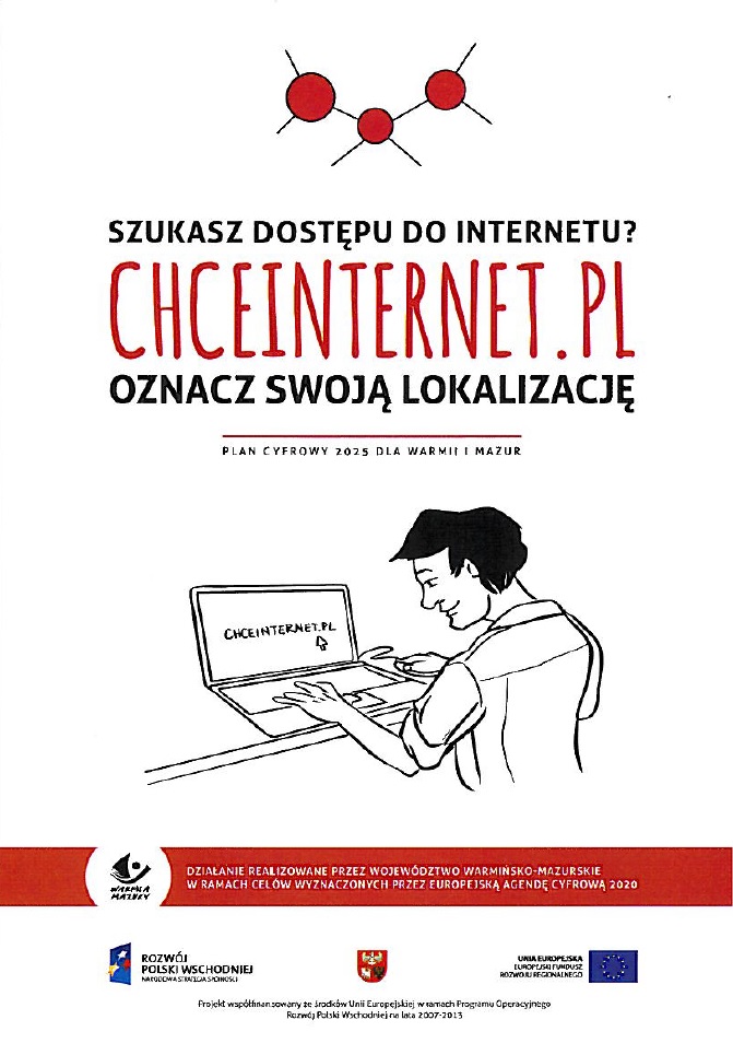 Zgłoś operatorom telekomunikacyjnym chęć posiadania Internetu. Oznacz się na interaktywnej mapie na stronie: www.chceinternet.pl