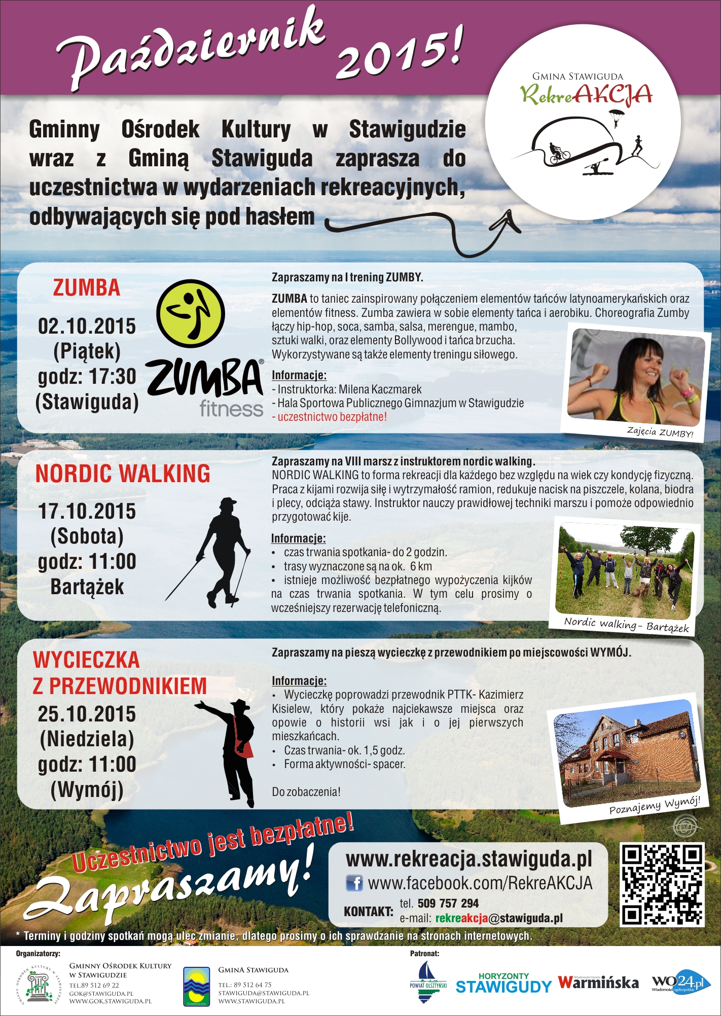 Gminny Ośrodek Kultury w Stawigudzie wraz z partnerami serdecznie zaprasza mieszkańców oraz gości Gminy Stawiguda do uczestnictwa w zajęciach realizowanych na PZU TRASIE ZDROWIA w Pluskach.