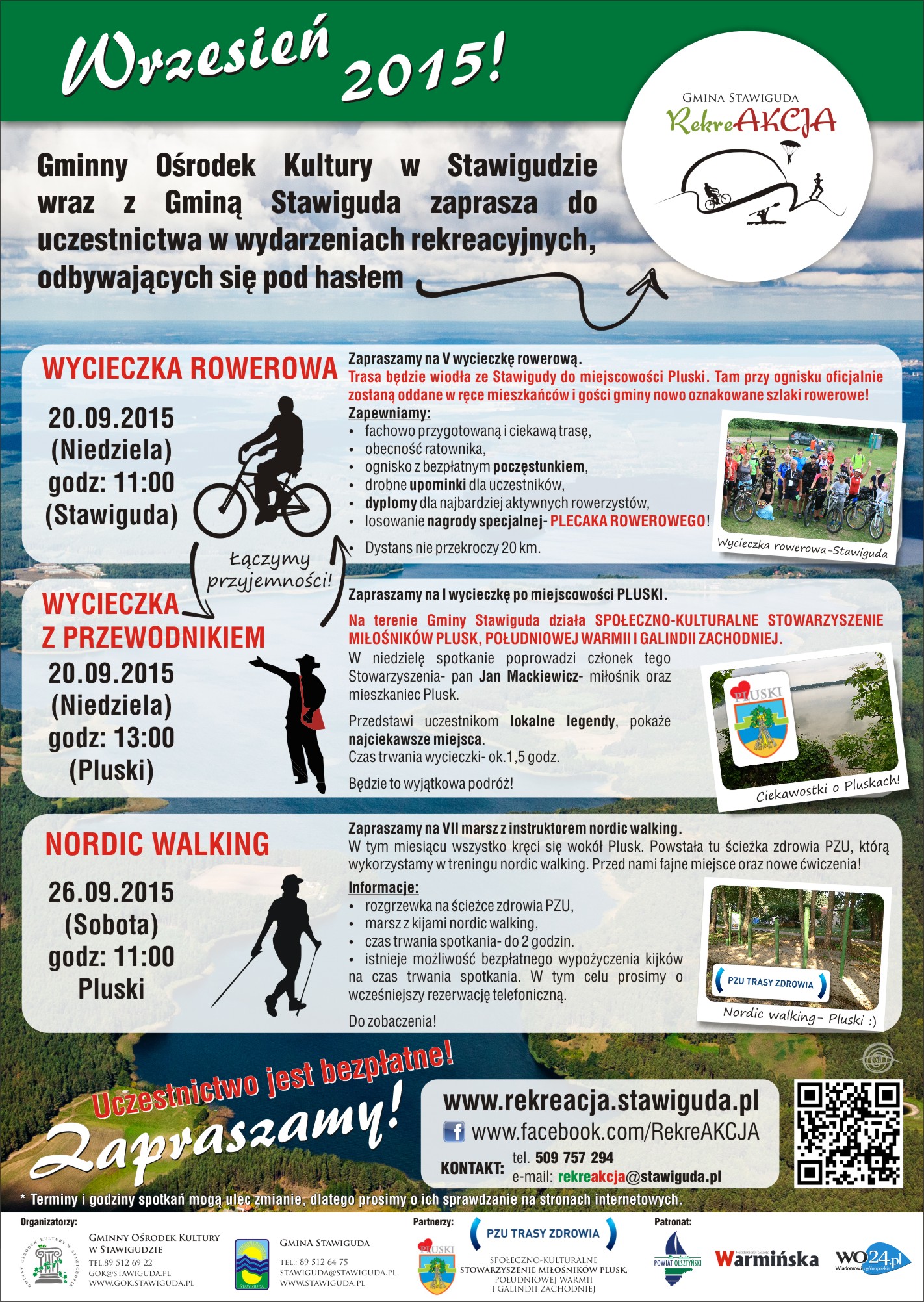 Gmina Stawiguda wraz z Gminnym Ośrodkiem Kultury w Stawigudzie zaprasza serdecznie do uczestnictwa we wrześniowych wydarzeniach realizowanych pod hasłem RekreAKCJA.