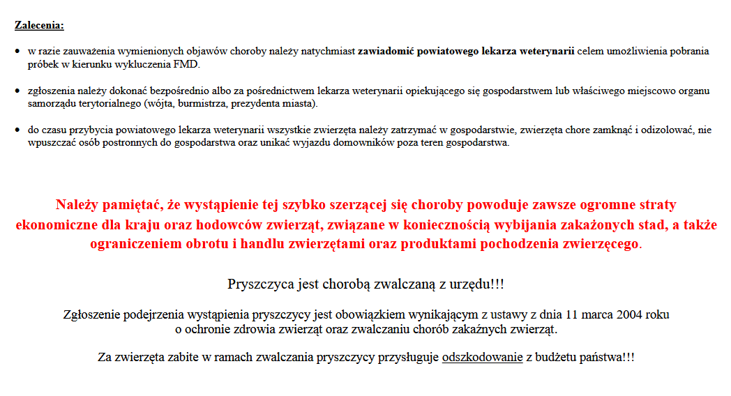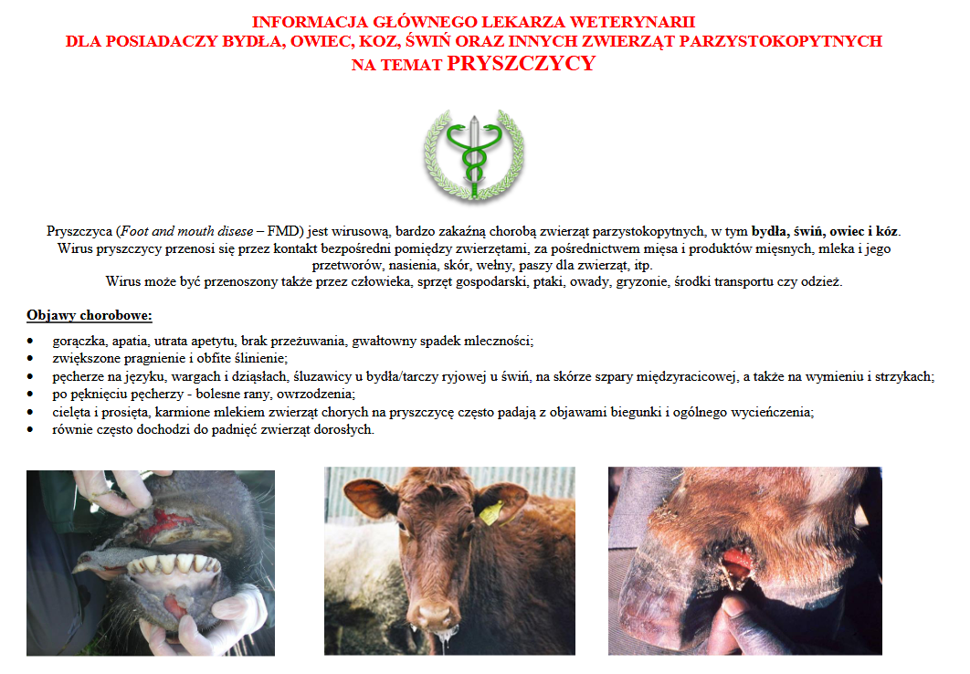 Informacja GLW dla posiadaczy bydła, owiec, kóz, świń oraz innych zwierząt parzystokopytnych na temat PRYSZCZYCY