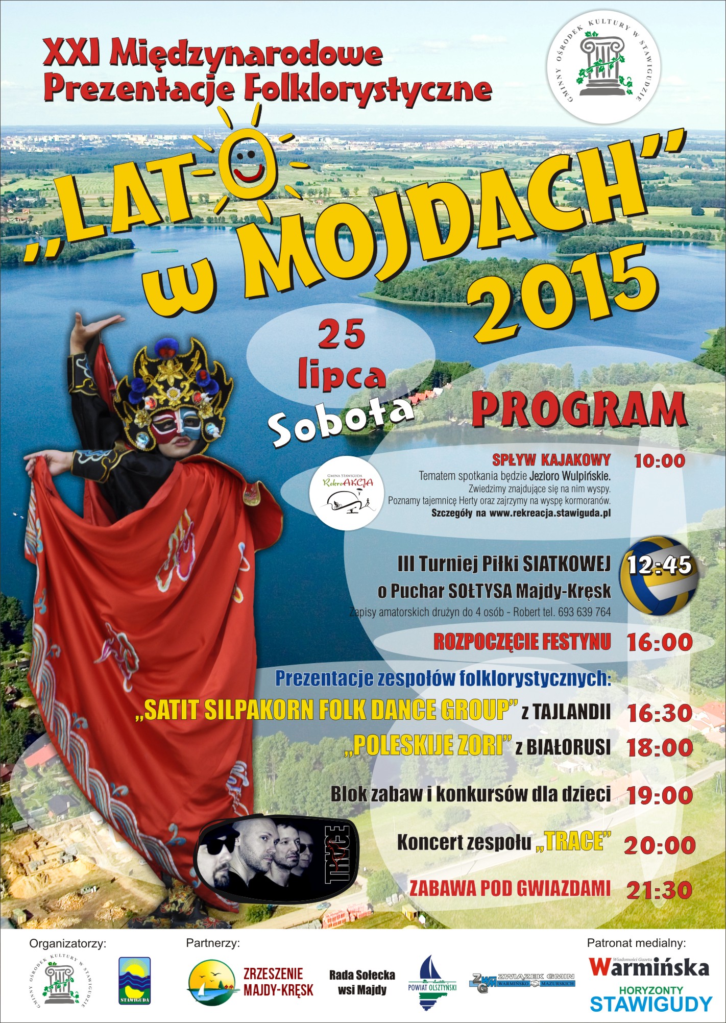 Gminny Ośrodek Kultury w Stawigudzie, Rada Sołecka oraz Stowarzyszenie "Zrzeszenie Majdy-Kręsk", mają zaszczyt zaprosić wszystkich chętnych i miłośników wsi Majdy-Kręsk na coroczny Festyn "Lato w Mojdach", który odbędzie się w dn. 25 lipca 2015r o godz. 16:00.