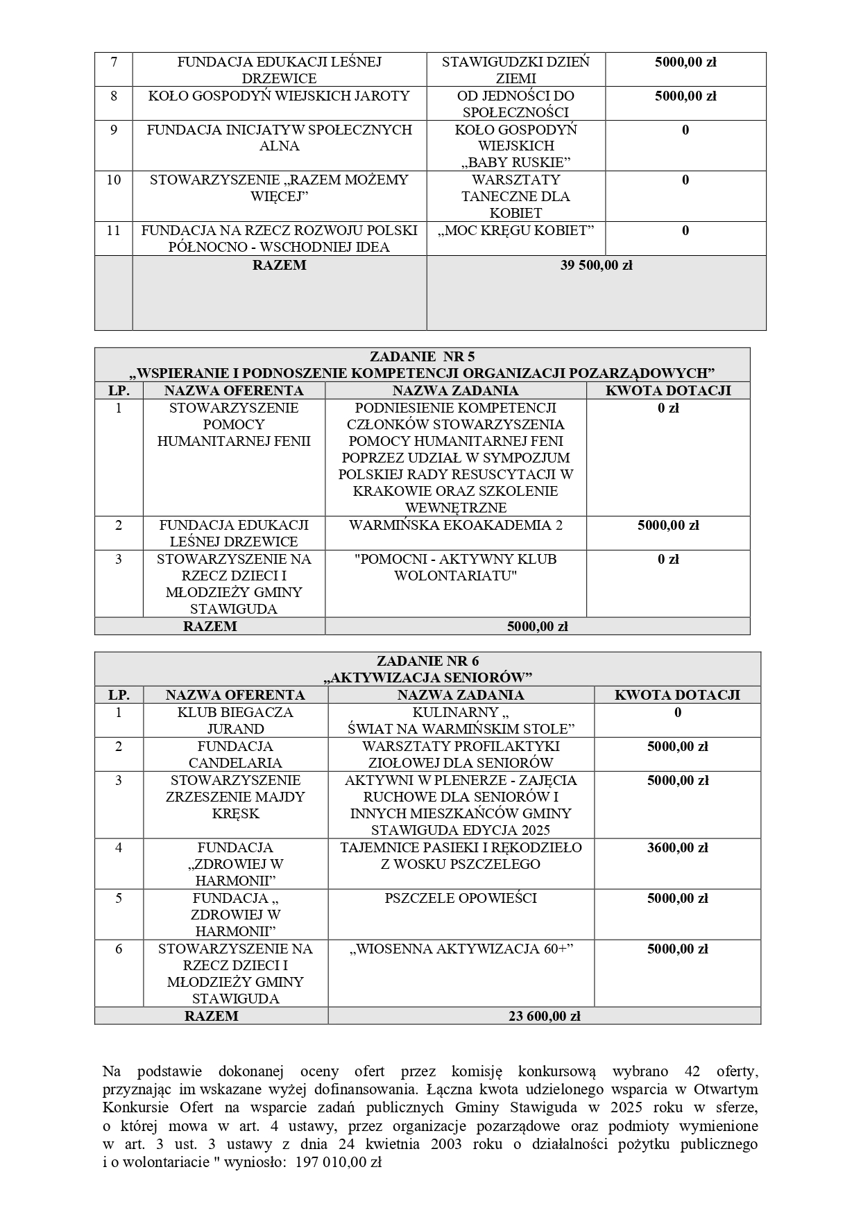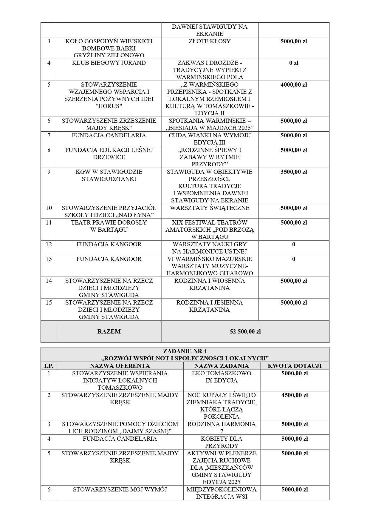 Gminy Stawiguda w 2025 roku w sferze, o której mowa w art. 4 ustawy, przez organizacje pozarządowe oraz podmioty wymienione w art. 3 ust. 3 ustawy z dnia 24 kwietnia 2003roku o działalności pożytku publicznego i o wolontariacie "