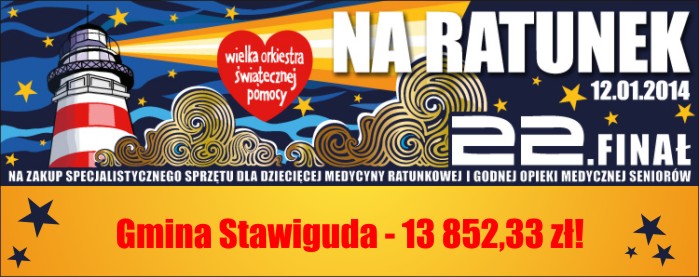 Po raz kolejny gmina Stawiguda uczestniczyła w akcji Wielkiej Orkiestry Świątecznej Pomocy. W 22 Finale wzięło udział 34 wolontariuszy, którzy zbierali pieniądze naszej gminie.