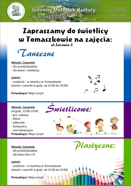 Zapraszamy na zajęcia tematyczne prowadzone w Świetlicy w Tomaszkowie