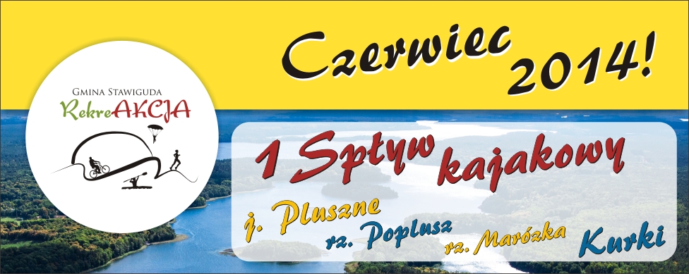 RekreAKCJA zaprasza mieszkańców Gminy Stawiguda i gości do uczestnictwa w I spływie kajakowym, który odbędzie się w ostatnią niedzielę czerwca 29.06.2014 r.