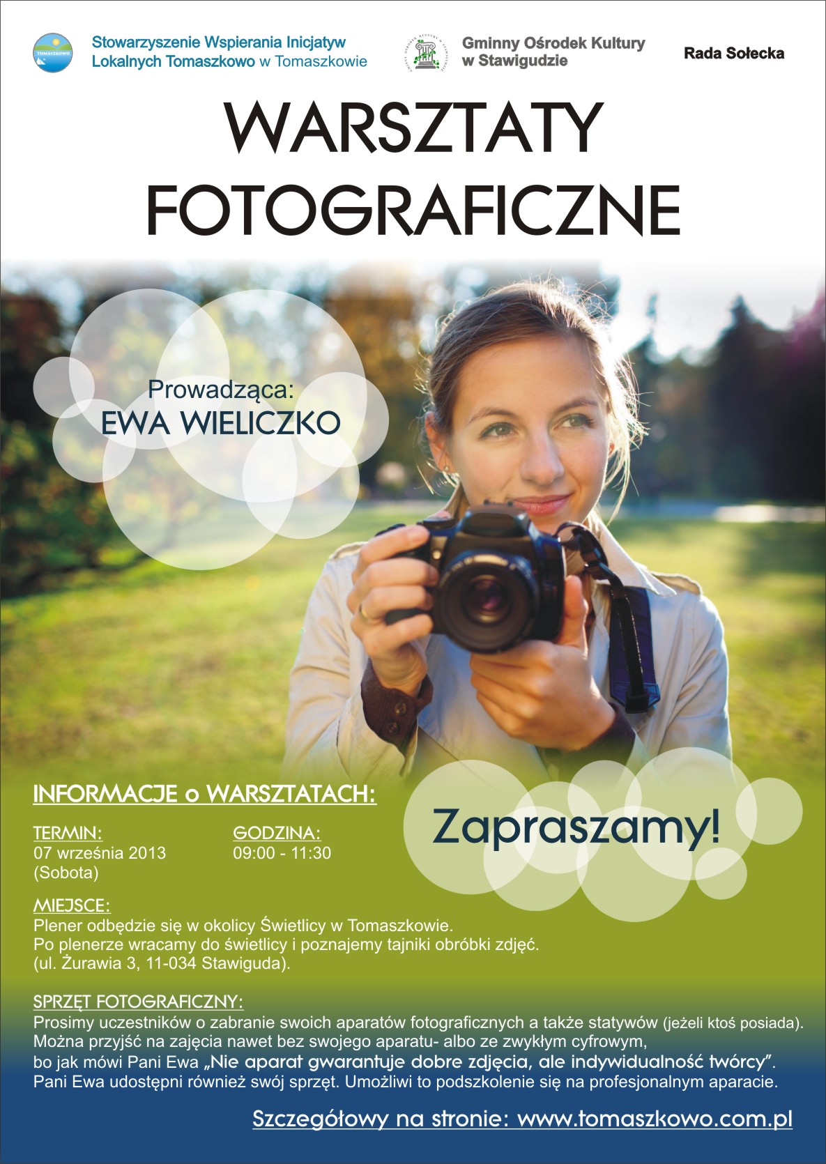 Zapraszamy do uczestnictwa w warsztatach fotograficznych, które odbędą się 7 września 2013 o godzinie 9:00 w Tomaszkowie.