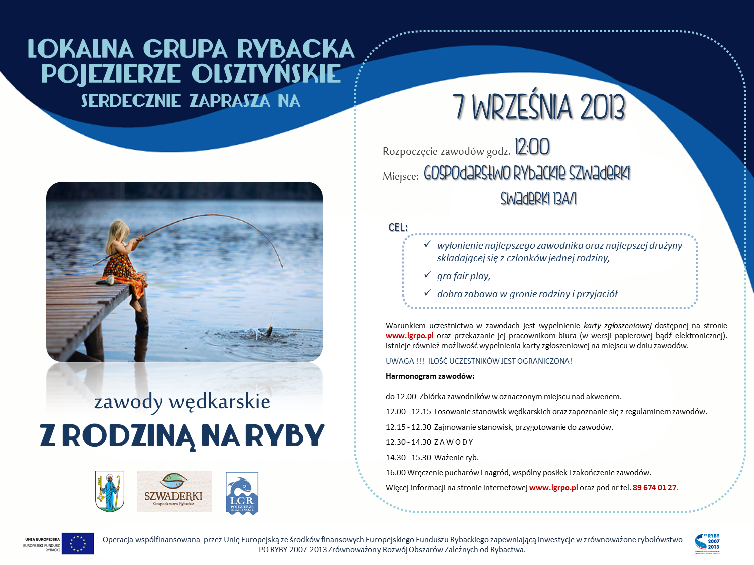 W dniu 7 września na terenie Gospodarstwa Rybackiego Szwaderki w Swaderkach odbędą się rodzinne zawody wędkarskie "Z rodziną na ryby". Zapraszamy!