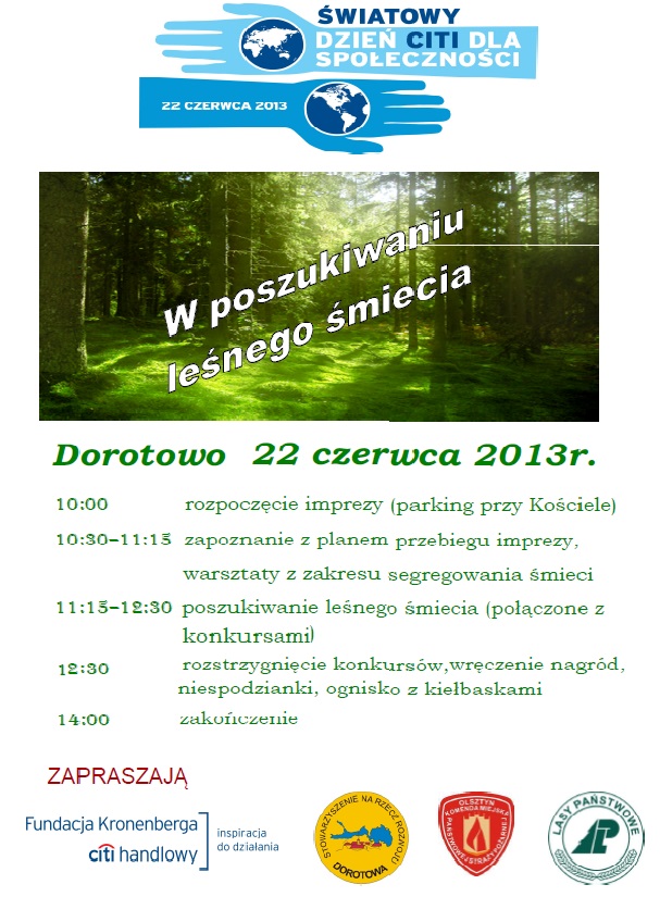 Stowarzyszenie na Rzecz Rozwoju Dorotowa zaprasza na imprezę pod nazwą "W Poszukiwaniu Leśnego Śmiecia"