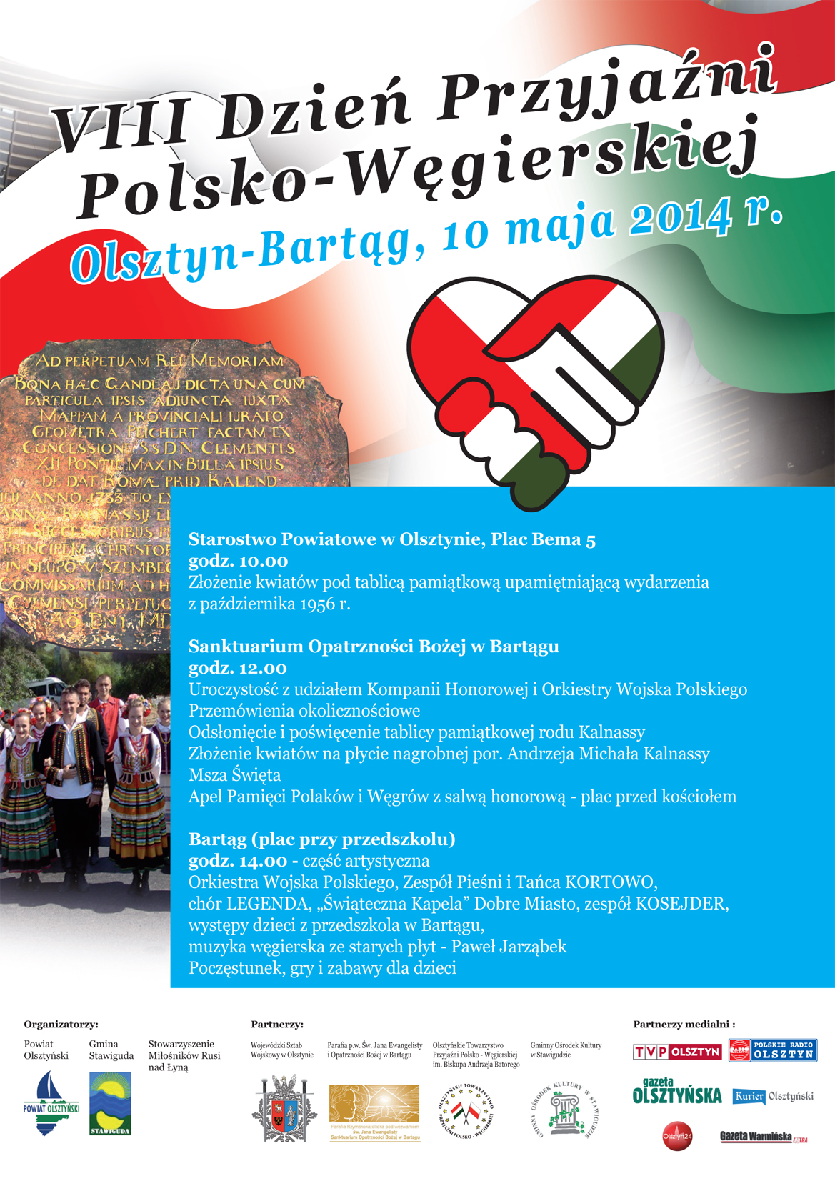 W sobotę 10 maja 2014 r. od godziny 10:00 w Bartągu rozpoczną się uroczyste obchody VIII Dnia Przyjaźni Polsko-Węgierskiej, na które serdecznie zapraszamy.