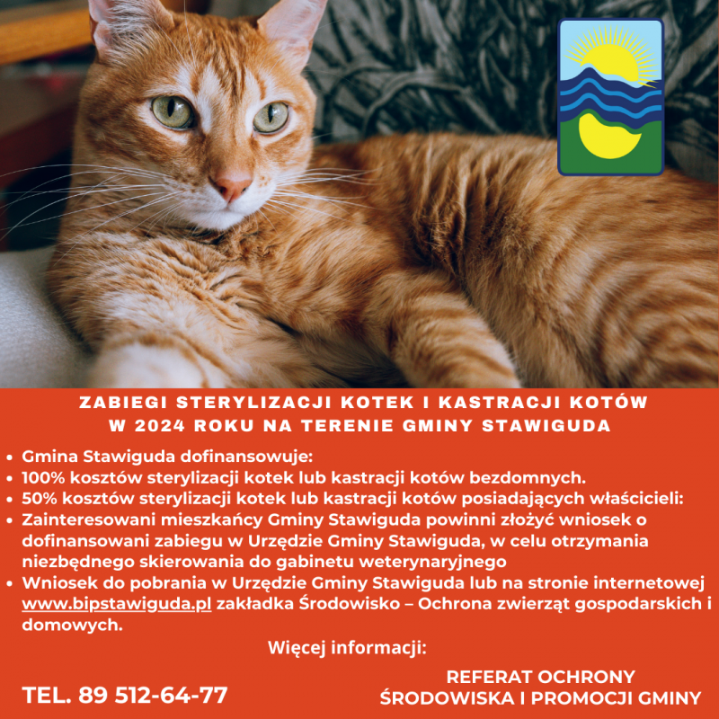 Informacja o zabiegach sterylizacji kotek i kastracji kotów w 2024 roku na terenie Gminy Stawiguda