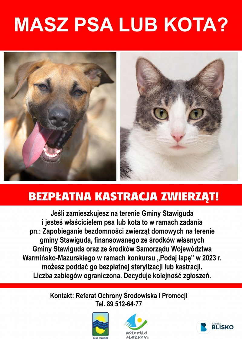 Bezpłatna Sterylizacja i Kastracja Psów i Kotów z terenu Gminy Stawiguda