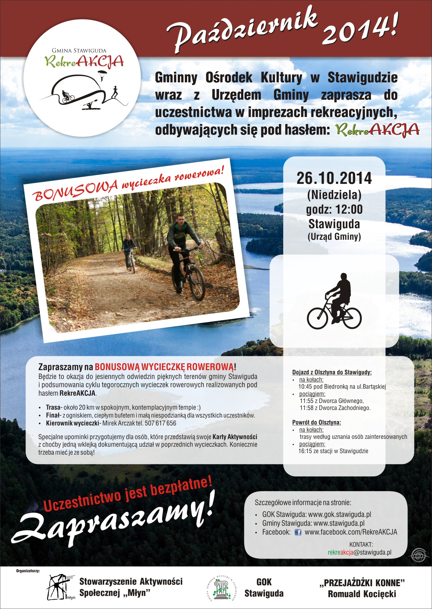 Będzie to świetna okazja do jesiennych odwiedzin pięknych terenów gminy Stawiguda i podsumowania cyklu tegorocznych wycieczek rowerowych realizowanych pod hasłem RekreAKCJA.