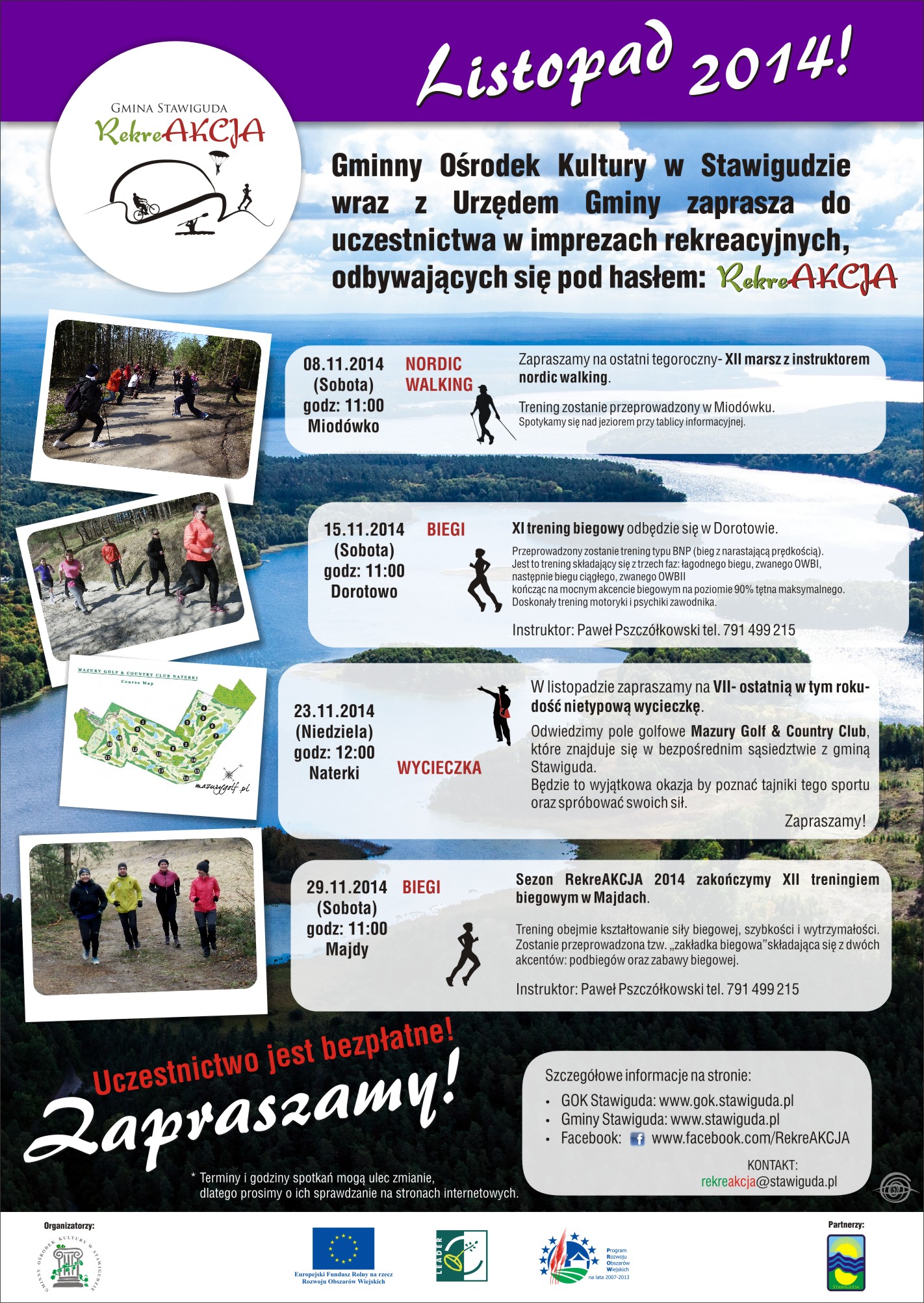 Serdecznie zapraszamy na ostatnią tegoroczną wycieczkę realizowaną w ramach RekreAKCJI, która odbędzie się w niedzielę 23 listopada 2014 r. Odwiedzimy pole golfowe Mazury Golf & Country Club!