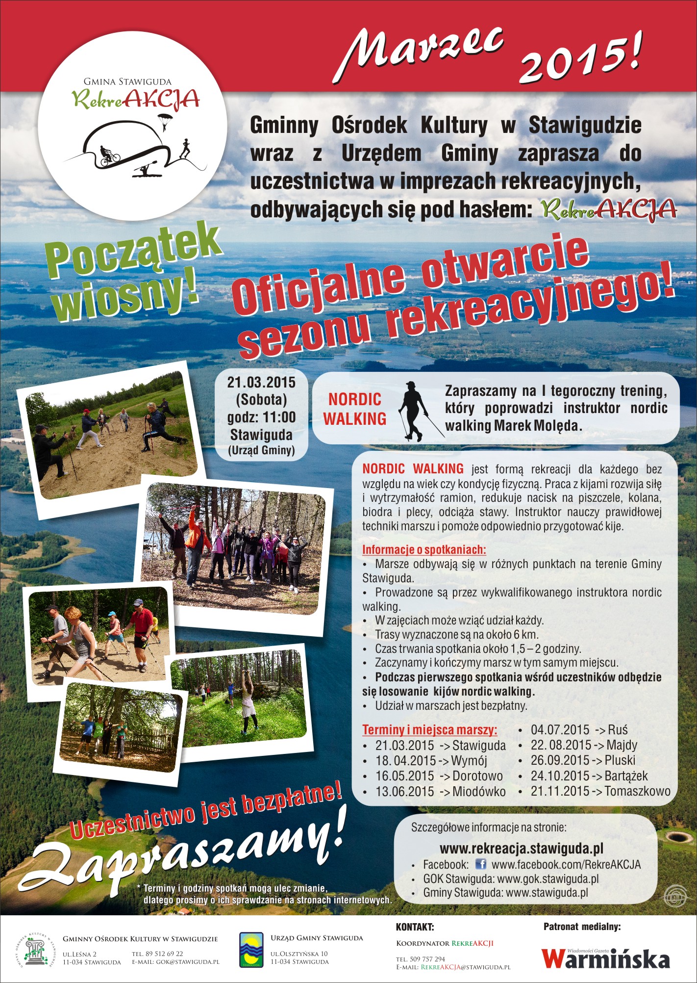 Zapraszamy na oficjalne otwarcie sezonu rekreacyjnego 2015- I marsz nordic walking w Stawigudzie