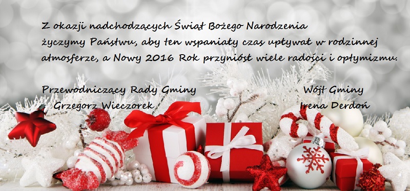 Z okazji  nadchodzących Świąt Bożego Narodzenia życzymy Państwu, aby ten wspaniały czas upłynął w rodzinnej atmosferze, a Nowy 2016 Rok przyniósł wiele radości i optymizmu