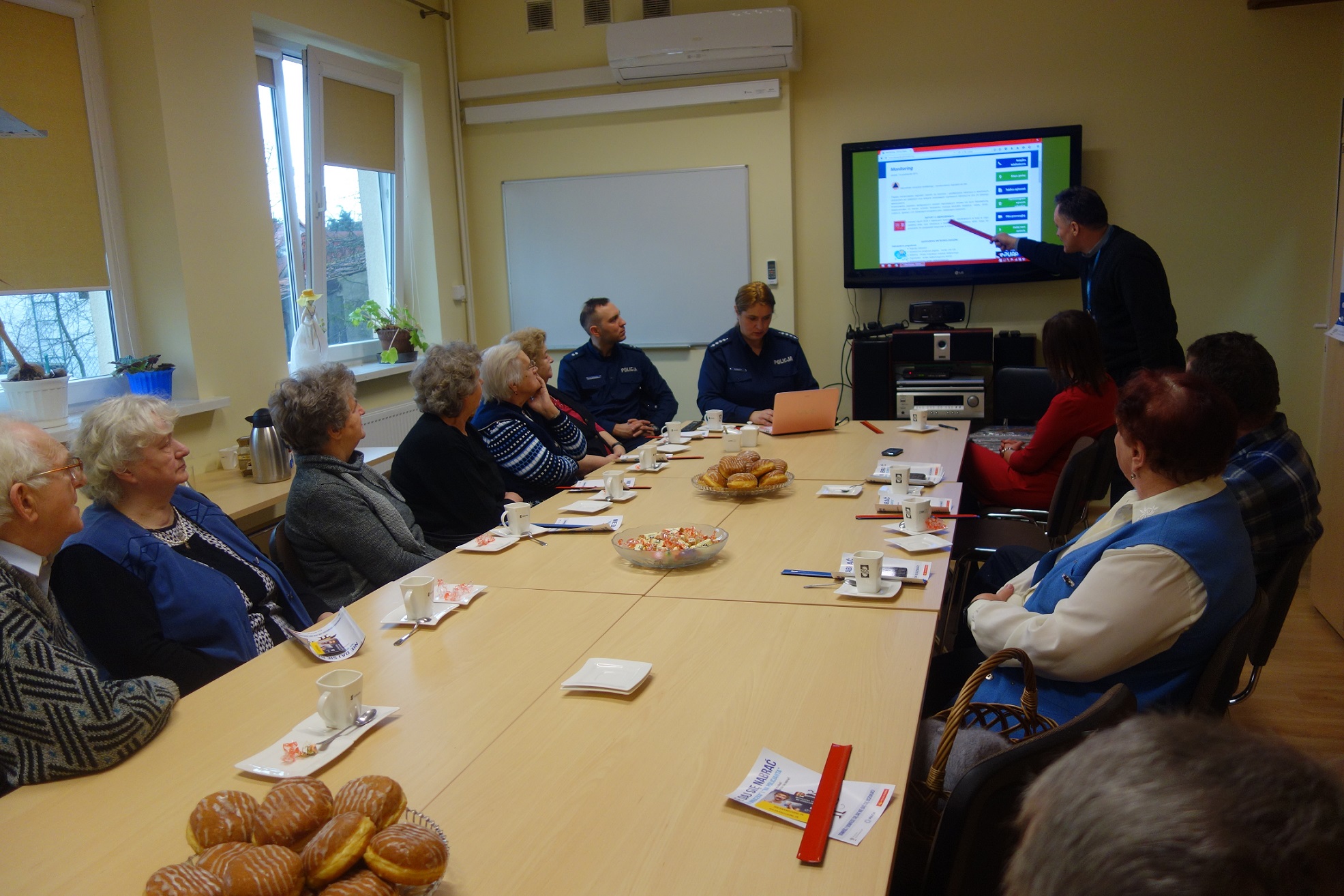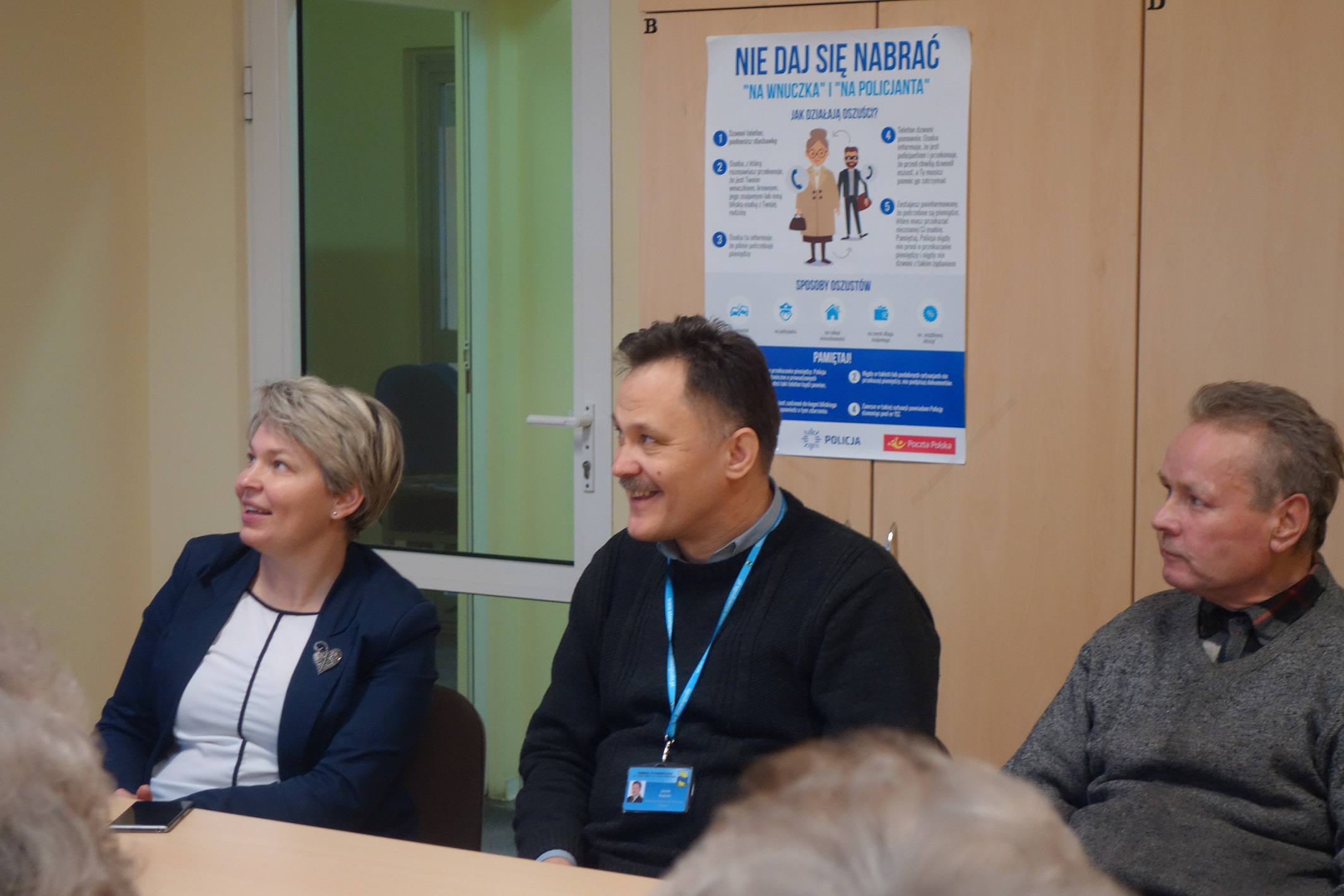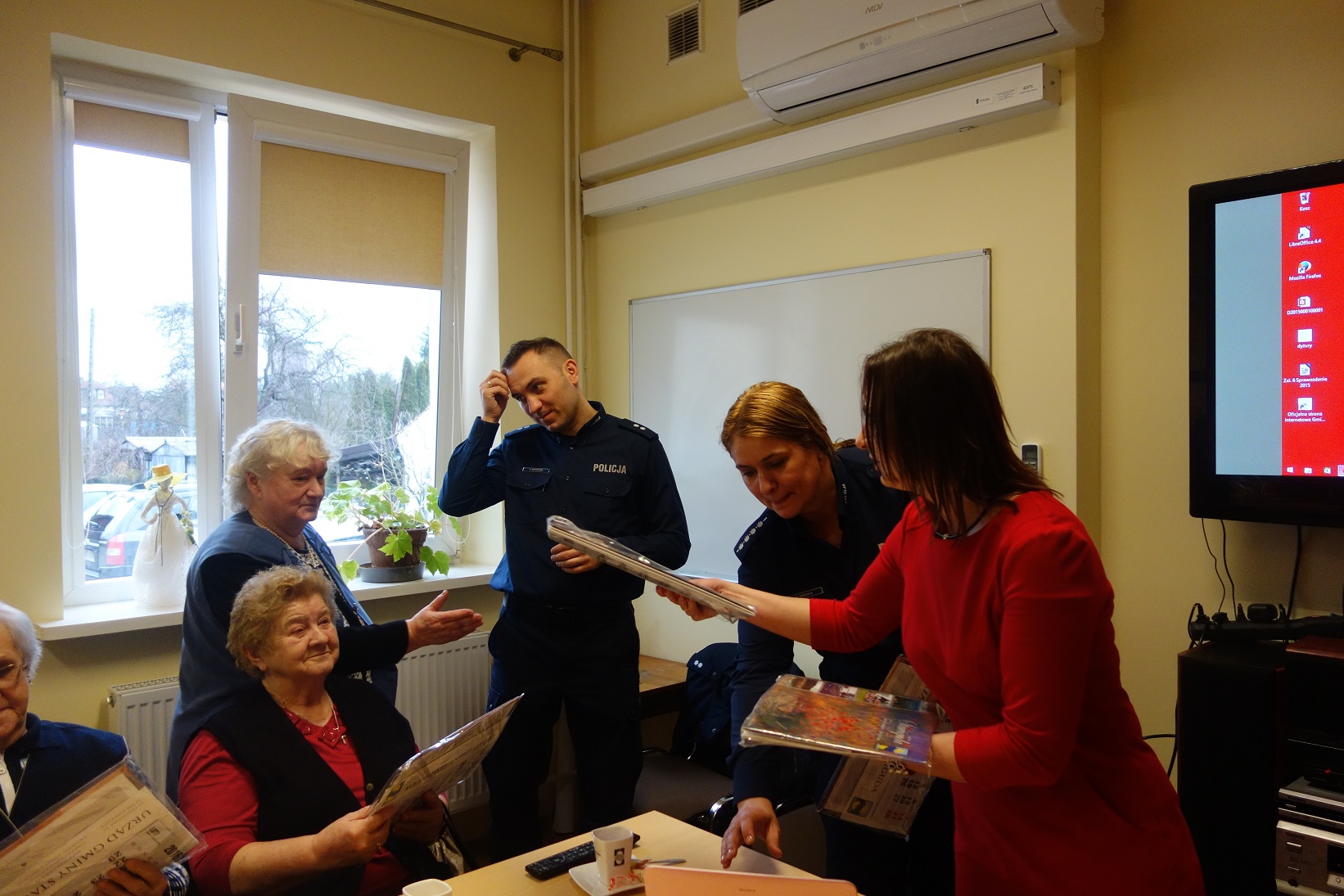 Policjantka p. Małgorzata Demianiuk przedstawiła metody, jakimi posługują się oszuści oraz wskazała jak postępować w przypadku potencjalnych zagrożeń. Seniorzy prócz licznych pytań sami podawali przykłady zdarzeń z jakimi spotkali się w przeszłości.