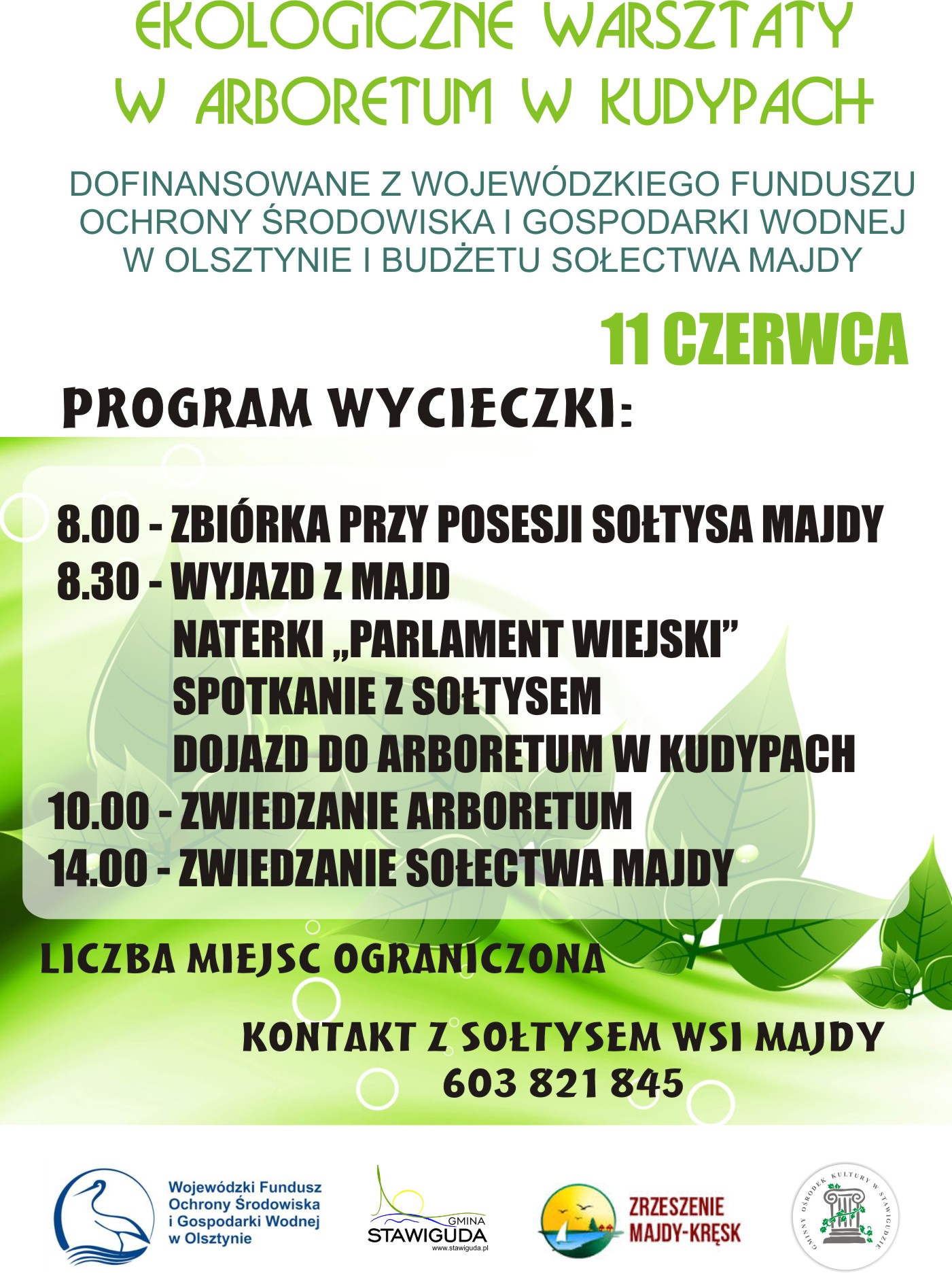 Ekologiczne Warsztaty w Arboretum w Kudypach, dofinansowane z Wojewódzkiego Funduszu Ochrony Środowiska i Gospodarki Wodnej w Olsztynie i budżetu sołectwa Majdy