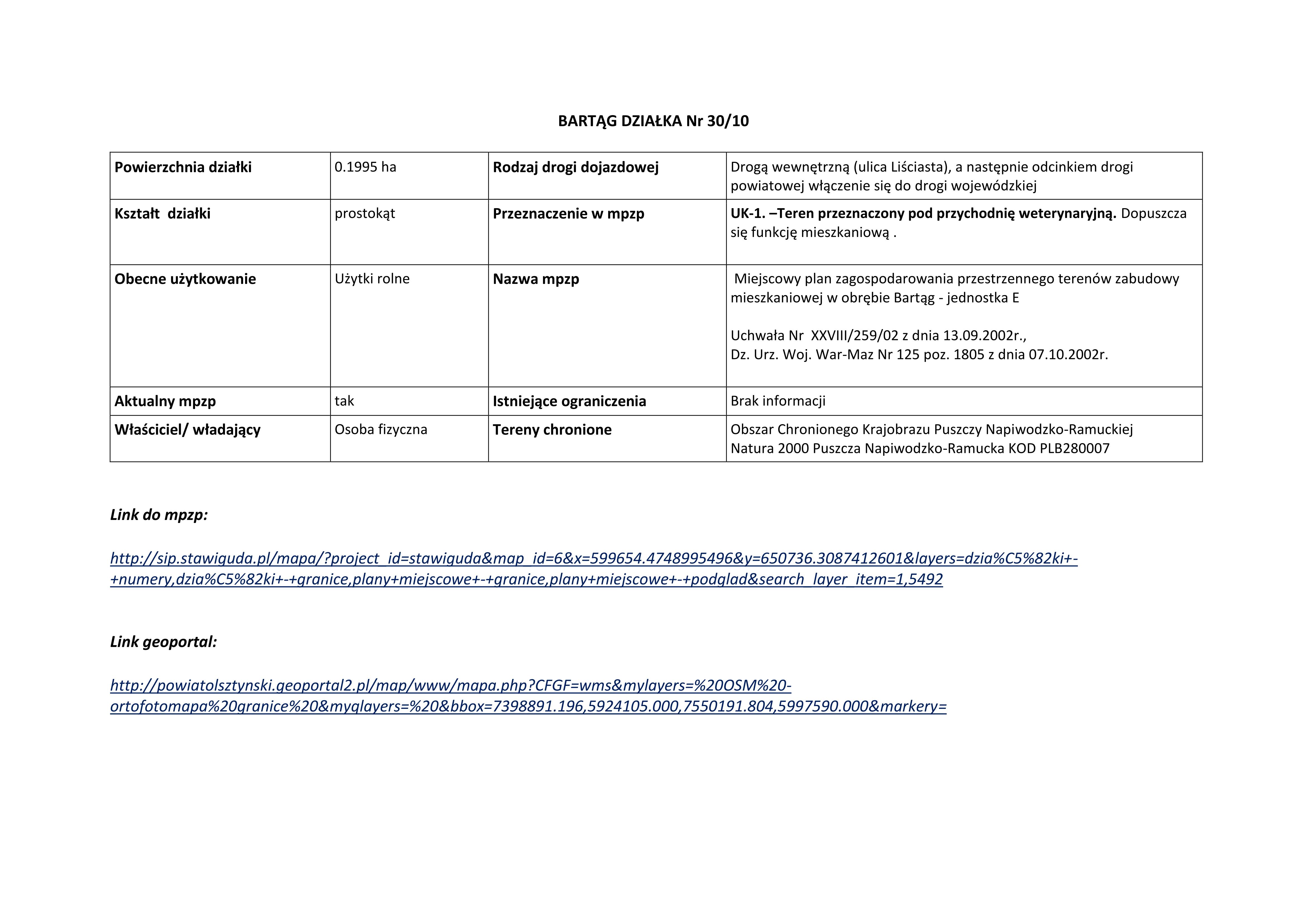 Bartąg, działka nr 30/10