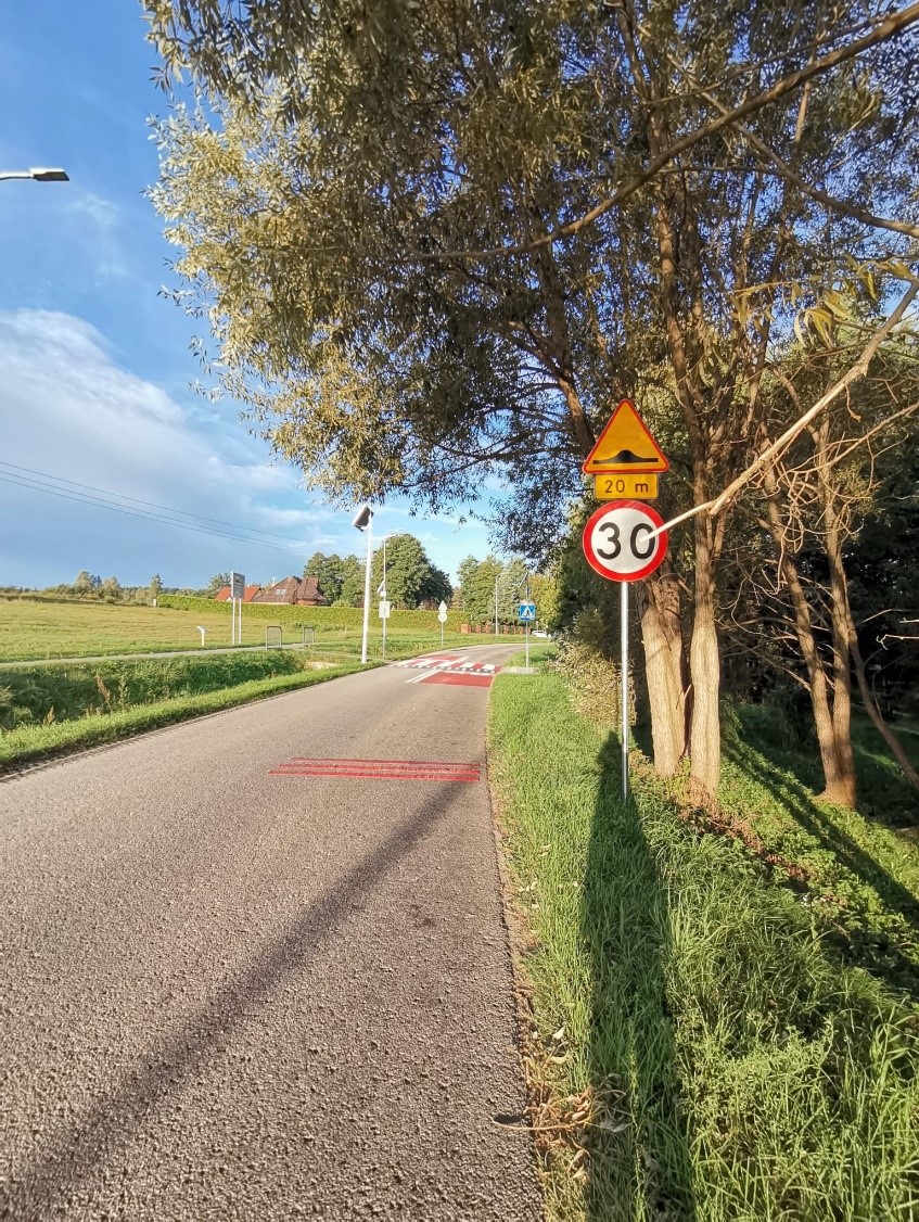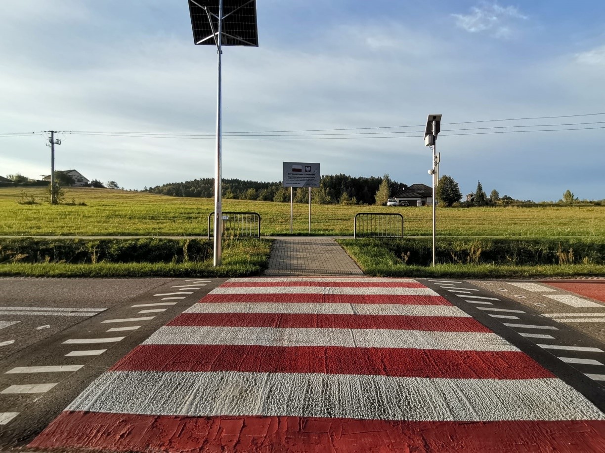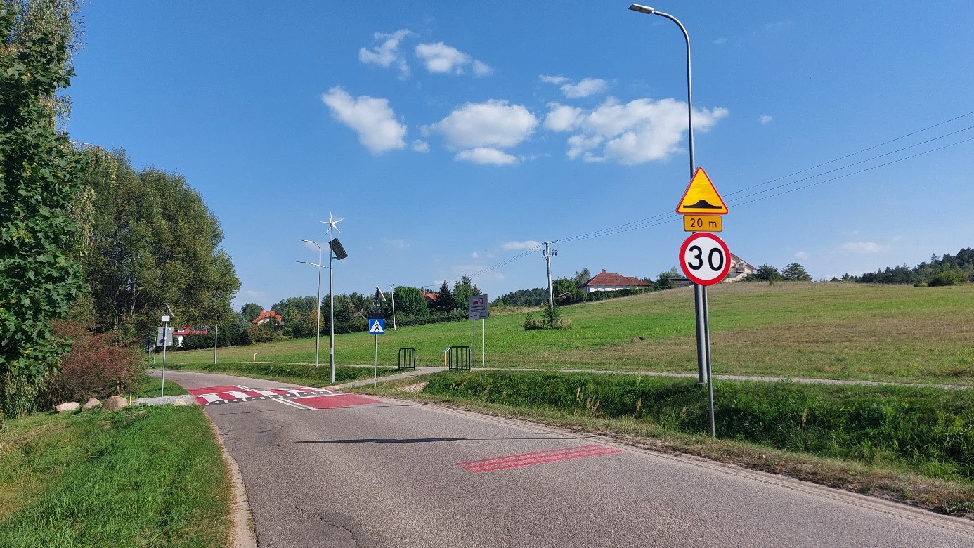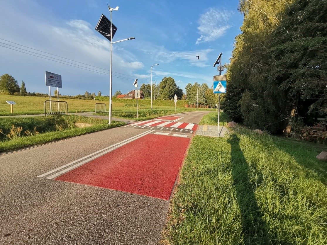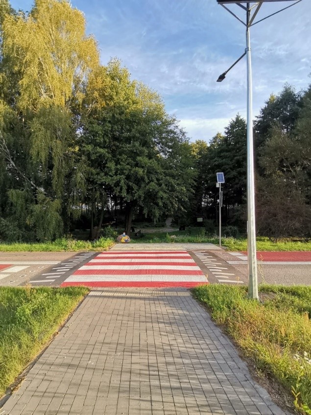 Zadanie obejmuje budowę wyniesionego przejścia dla pieszych. Dla zwiększenia bezpieczeństwa przy przejściu zaplanowano wykonanie: mat antypoślizgowych, linie warunkowego zatrzymania oraz linię rozgraniczającą pasy ruchu w obrębie oddziaływania przejścia dla pieszych, przy pasach zaprojektowano punkty świetlne "kocie oczka", oznakowanie akustyczne - pasy wibracyjne. W celu poprawy funkcjonalności przejścia dla osób z niepełnosprawnościami strefa oczekiwania została wyposażona w system informacji fakturowej. Elementem wykonanym jest również dodatkowe dedykowane oświetlenie w postaci latarni hybrydowej.