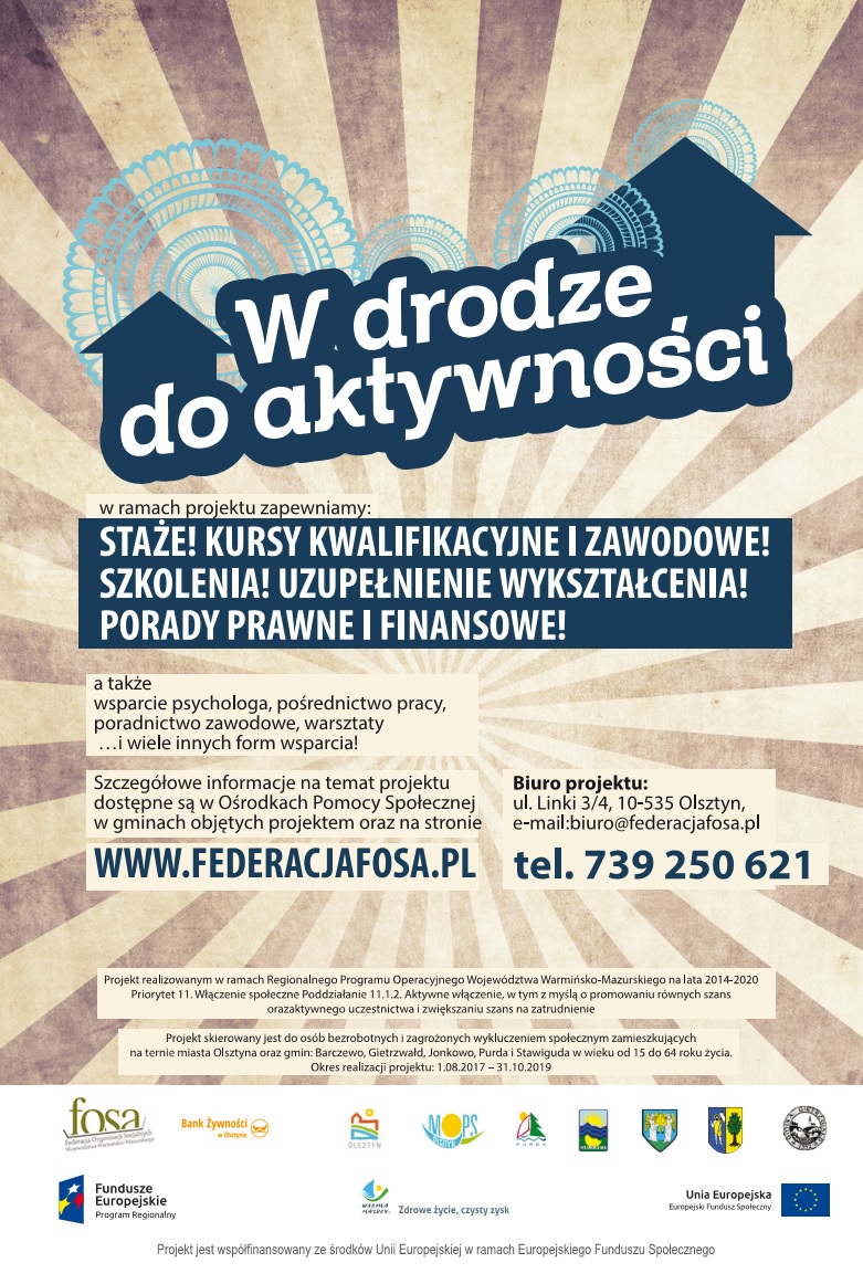 Projekt ma na celu ułatwienie powrotu do czynnego życia społecznego i zawodowego osób długotrwale pozostających bez pracy oraz utworzenie grupy wsparcia dla kobiet przeżywających trudności związane z rolą rodzica i posiadających trudności opiekuńczo-wychowawcze.