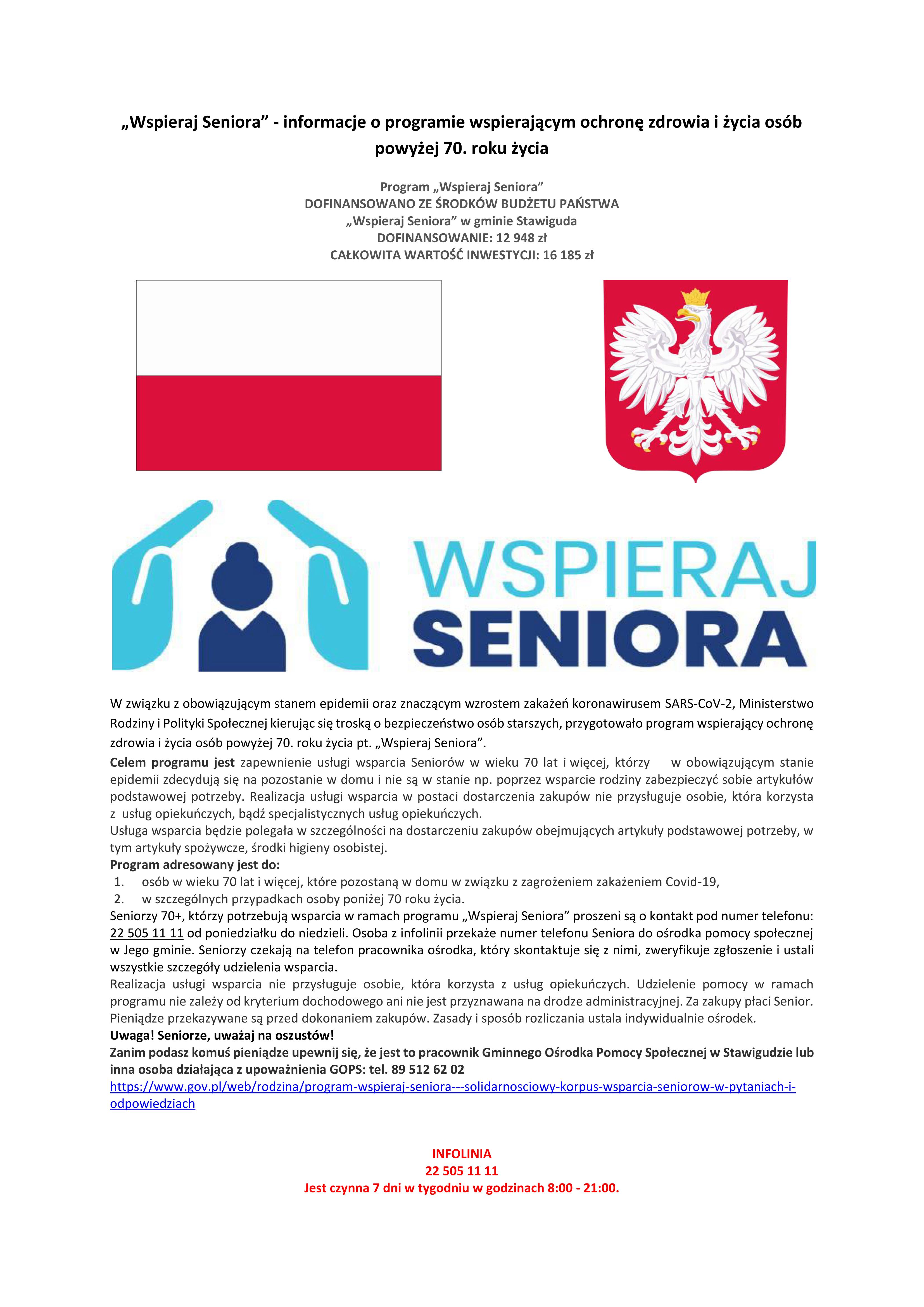 Gmina Stawiguda / Gminny Ośrodek Pomocy Społecznej w Stawigudzie przystąpiła do Programu „Asystent osobisty osoby niepełnosprawnej” - edycja 2024 realizowanego ze środków Funduszu Solidarnościowego.