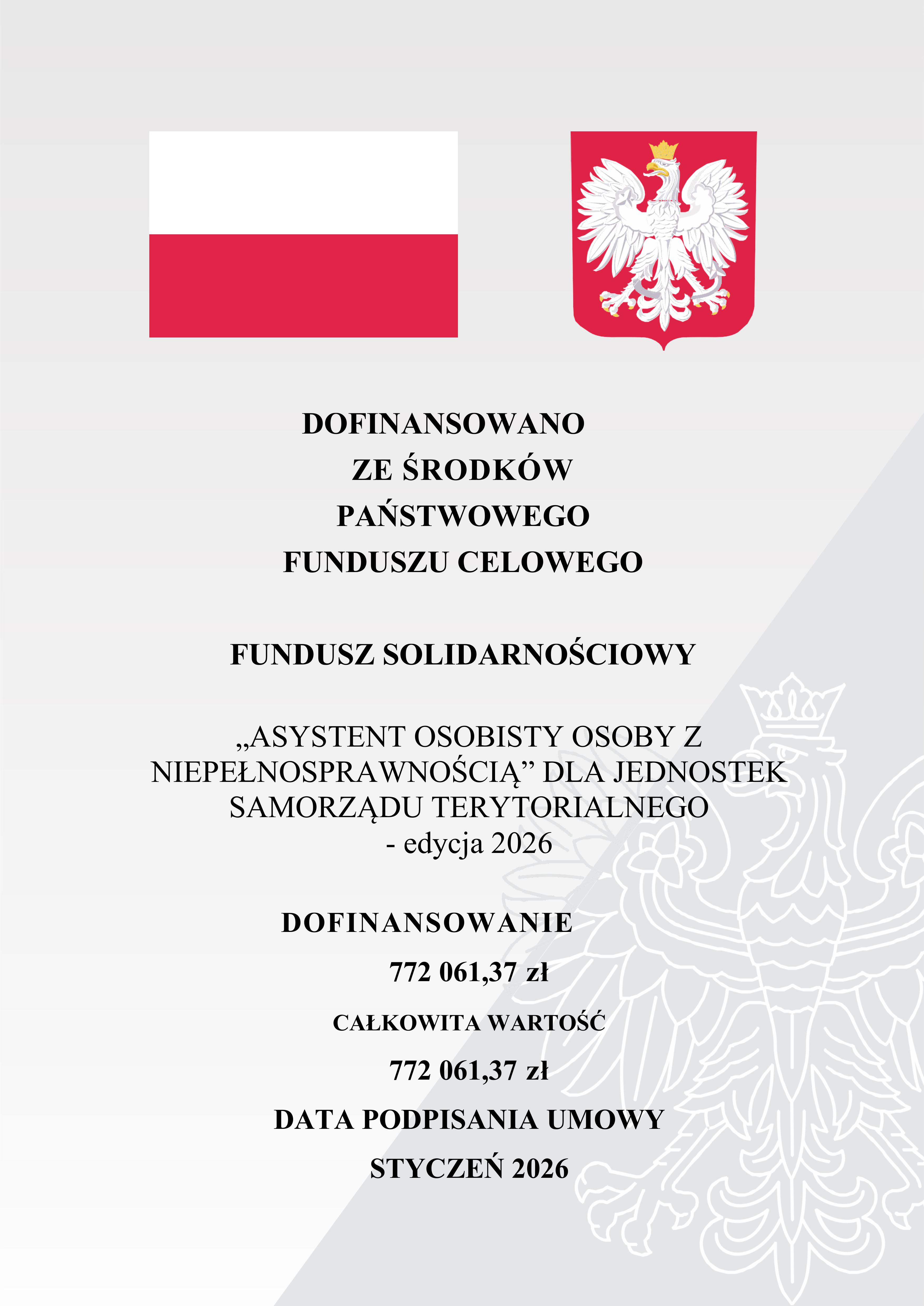 Gmina Stawiguda / Gminny Ośrodek Pomocy Społecznej w Stawigudzie przystąpiła do Programu „Asystent osobisty osoby z niepełnosprawnością” - edycja 2026 realizowanego ze środków Funduszu Solidarnościowego.