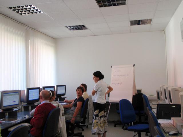 Kolejnym działaniem było przeprowadzenie szkolenia komputerowego. Trwało ono od 28.07.08 do 05.09.08 roku. Program szkolenia komputerowego został podzielony na trzy części. Pierwsza część to nauka podstawowych umiejętności takich jak: uruchamianie komputera, posługiwanie się myszką i klawiaturą. Podstawowym celem szkolenia było poznanie zasad działania komputera oraz programu operacyjnego Windows. W części drugi trener starał się nauczyć umiejętności pisania i formatowania tekstu – odbywało się to w formie ćwiczeń. Część trzecia oparta była na znajdowaniu potrzebnych informacji w Internecie np. ceny maszyn czy kursu walut. Tu kursanci z zaciekawieniem wyszukiwali oferty pracy, ciekawostki dotyczące ich zainteresowań oraz potrzebne im informacje. Ta część programu przewidywała także wędrowanie po stronach Internetu i związane z tym pobieranie, zapisywanie oraz drukowanie dokumentów. Trener w/w szkolenia uczył redagowania dokumentów aplikacyjnych, jakie niezbędne są przy ubieganiu się o zatrudnienie. W szkoleniu uczestniczyło 18 osób. Zostali oni podzieleni na dwie grupy. Zajęcia komputerowe odbywały się na terenie GOPS Stawiguda w specjalnie wyznaczonej i wyposażonej sali (48h). Prowadził je pracownik GOPS. Wykładowca przekazywał uczestnikom szkolenia praktyczną wiedzę odnośnie poruszania się za pomocą Internetu oraz dawał wskazówki jak dobrze napisać podstawowe dokumenty np. CV. Uczestnicy projektu zdobyli takie umiejętności jak: