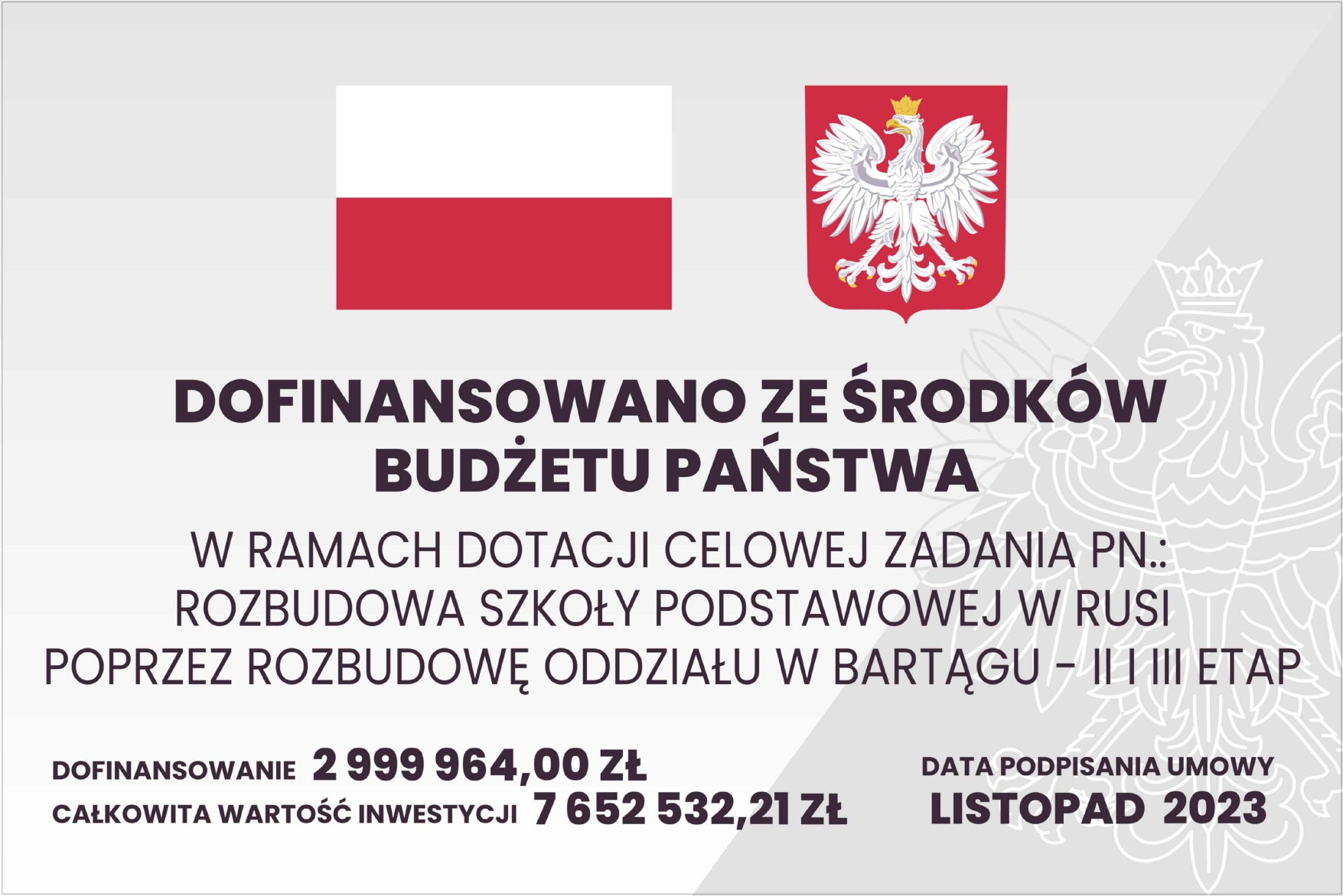 Rozbudowa Szkoły Podstawowej w Rusi poprzez rozbudowę oddziału w Bartągu – II i III etap
