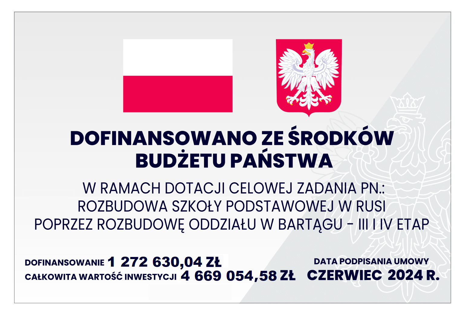 Rozbudowa Szkoły Podstawowej w Rusi poprzez rozbudowę oddziału w Bartągu – III i IV etap