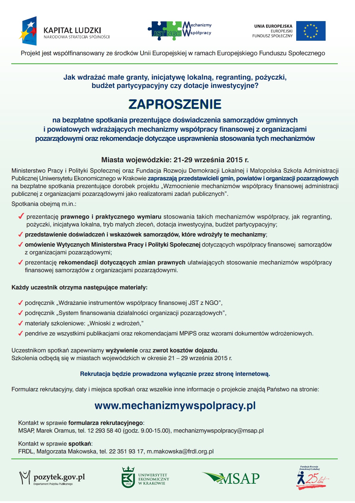Informacje o konkursie można uzyskać pod nr tel.: (22) 522 93 75 od poniedziałku do piątku w godz. 8.00-16.00 lub mailowo: