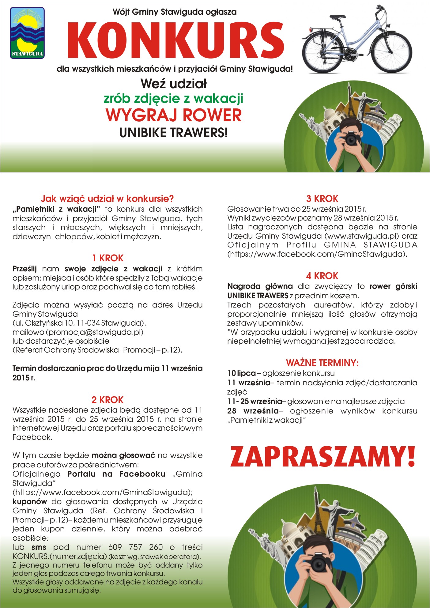 Zgłoszenia przyjmowane są do 14.02.2020 r., a szczegóły dostępne w Referacie Ochrony Środowiska i Promocji, Urzędu Gminy Stawiguda, ul. Olsztyńska 10, 11-034 Stawiguda, tel. (89) 5126477 – osoba do kontaktu: p. Monika Grzymowicz.