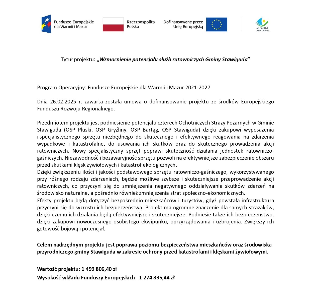 „Wzmocnienie potencjału służb ratowniczych Gminy Stawiguda”